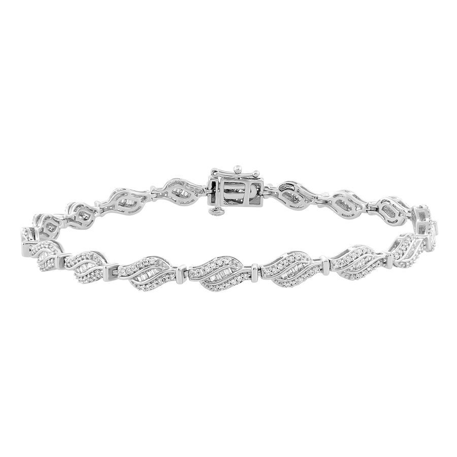 Home Bracelets/bangles LADIES BRACELET 1.00CT ROUND/BAGUETTE DIAMOND 10K WHITE GOLD