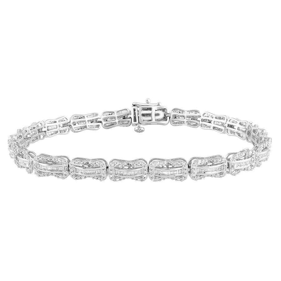 LADIES BRACELET 1.00CT ROUND/BAGUETTE DIAMOND 10K WHITE GOLD