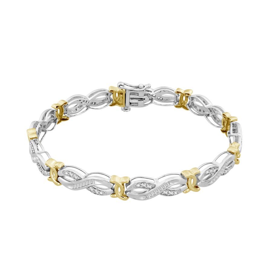 LADIES BRACELET 1.00CT ROUND/BAGUETTE DIAMOND 10K WHITE/YELLOW GOLD