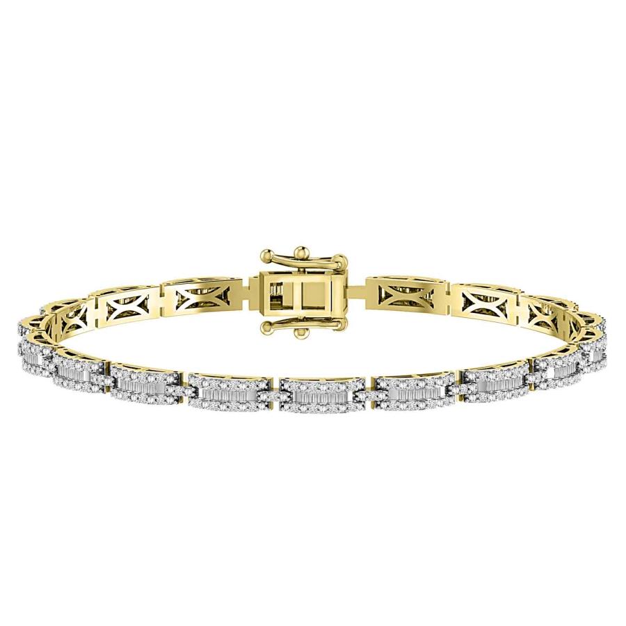 Home Bracelets/bangles LADIES BRACELET 1.00CT ROUND/BAGUETTE DIAMOND 10K YELLOW GOLD
