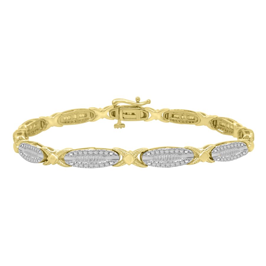 LADIES BRACELET 1.00CT ROUND/BAGUETTE DIAMOND 10K YELLOW GOLD