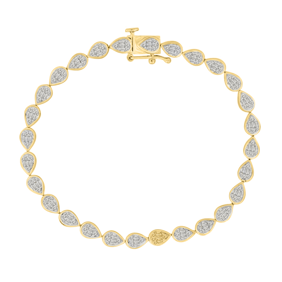 Home Bracelets/bangles LADIES BRACELET 1.00CT ROUND/BAGUETTE DIAMOND 10K YELLOW GOLD