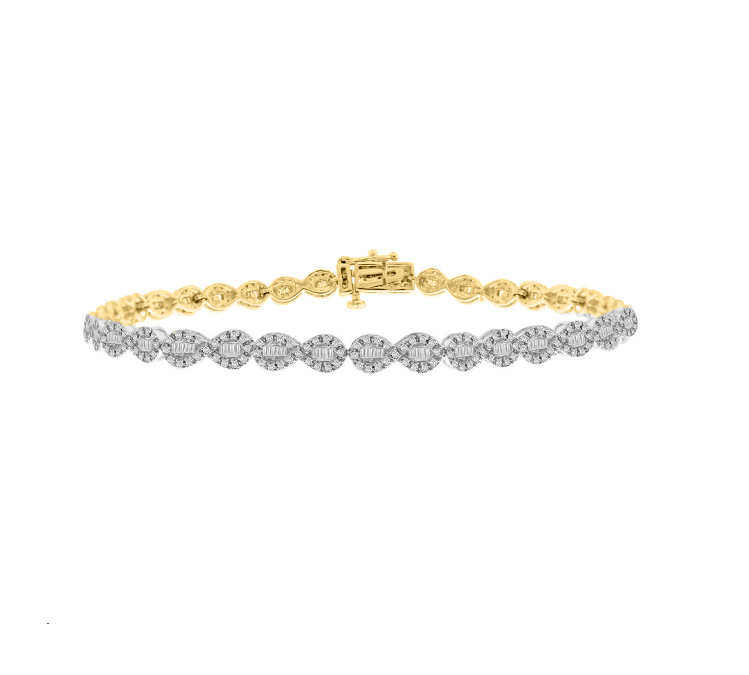 LADIES BRACELET 1.00CT ROUND/BAGUETTE DIAMOND 14K YELLOW GOLD (SI QUALITY)