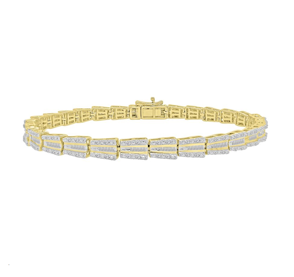 LADIES BRACELET 1.00CT ROUND/BAGUETTE DIAMOND 14K YELLOW GOLD (SI QUALITY)