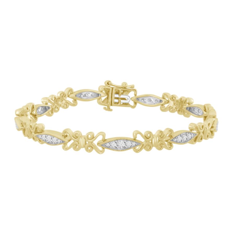 LADIES BRACELET 0.20CT ROUND DIAMOND YELLOW GOLD/STERLING SILVER