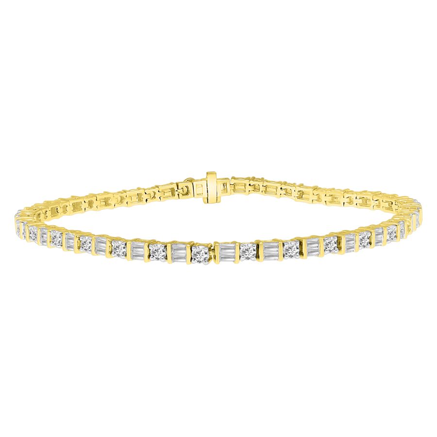 LADIES BRACELET 3.00CT ROUND/BAGUETTE DIAMOND 10K YELLOW GOLD