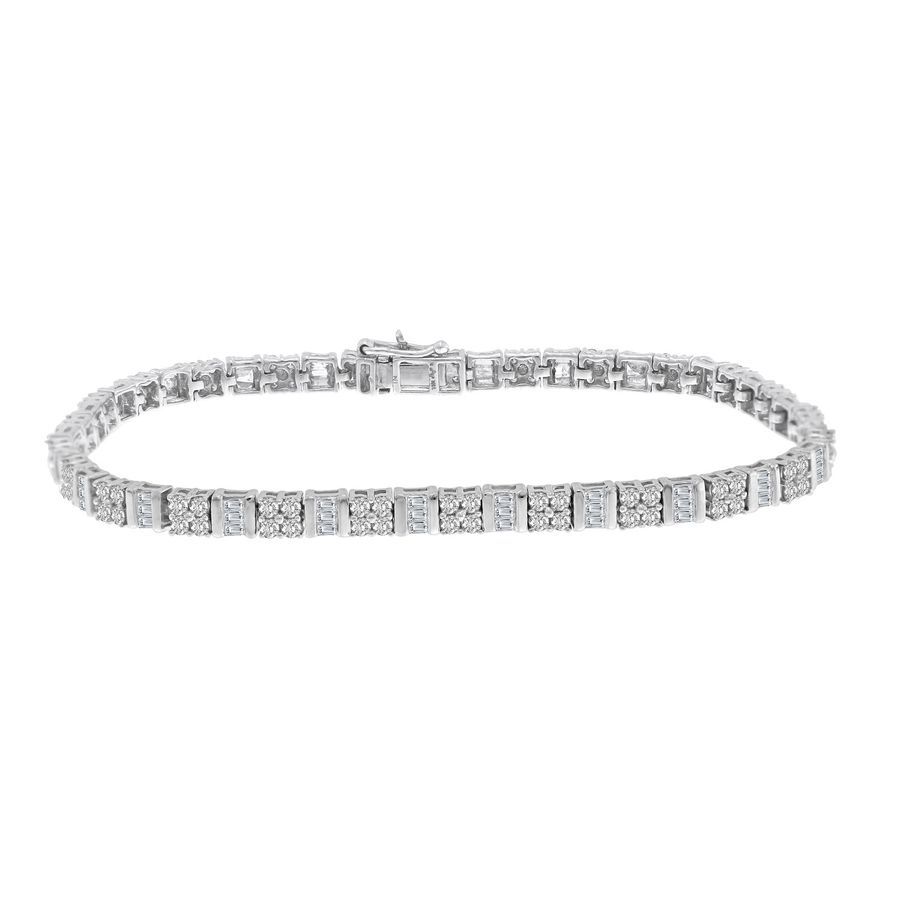LADIES BRACELET 3.00CT ROUND/BAGUETTE DIAMOND 14K WHITE GOLD