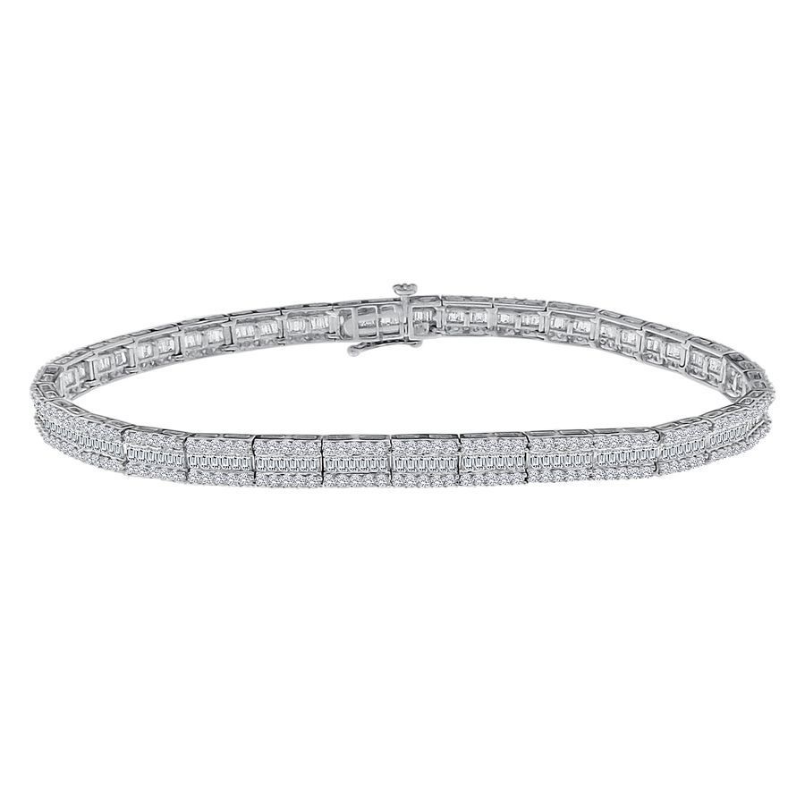 LADIES BRACELET 3.00CT ROUND/BAGUETTE DIAMOND 14K WHITE GOLD (SI QUALITY)