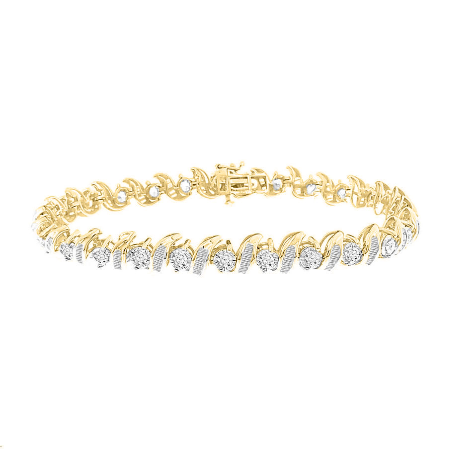 LADIES BRACELET 3.00CT ROUND/BAGUETTE DIAMOND 14K YELLOW GOLD