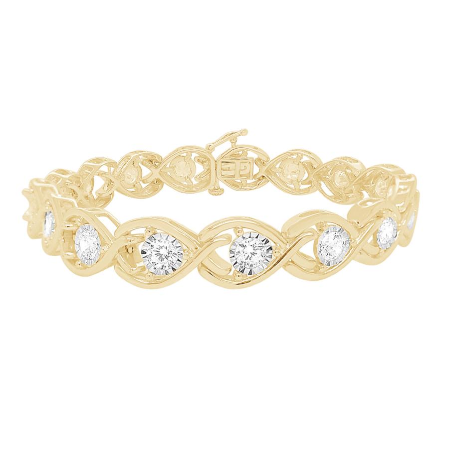 LADIES BRACELET 3.00CT ROUND DIAMOND 10K YELLOW GOLD