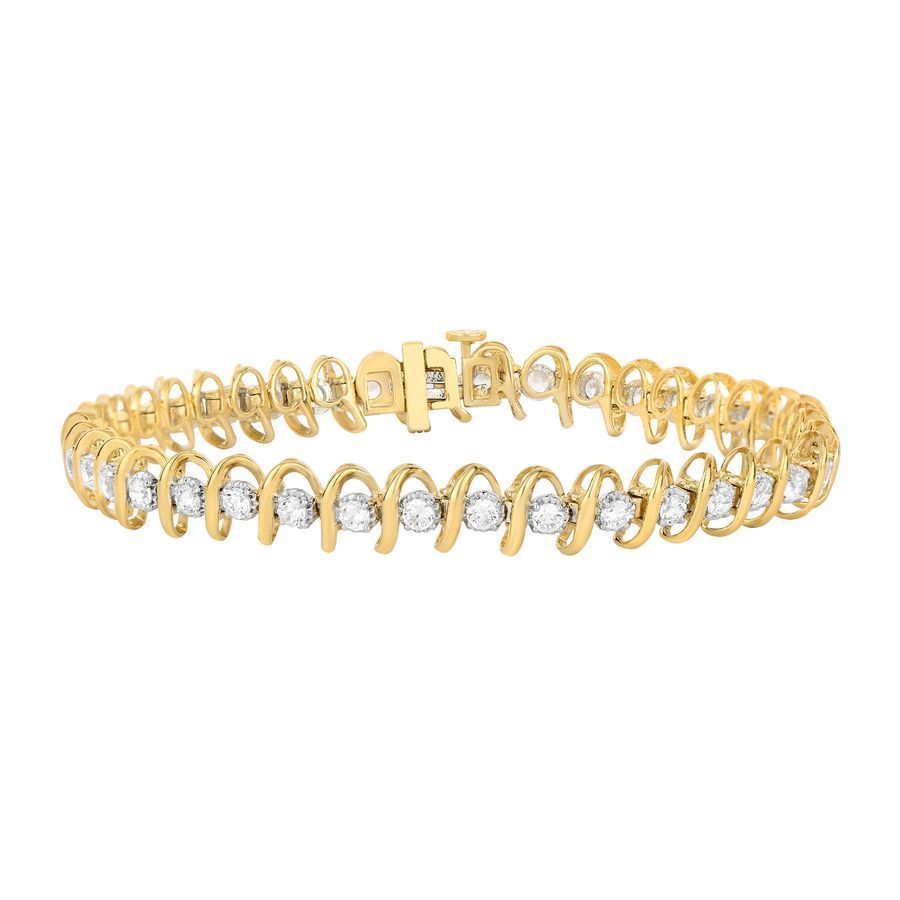 LADIES BRACELET 3.00CT ROUND DIAMOND 10K YELLOW GOLD