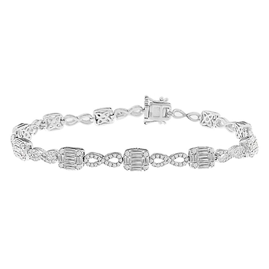 LADIES BRACELET 3.50CT ROUND/BAGUETTE DIAMOND 14K WHITE GOLD