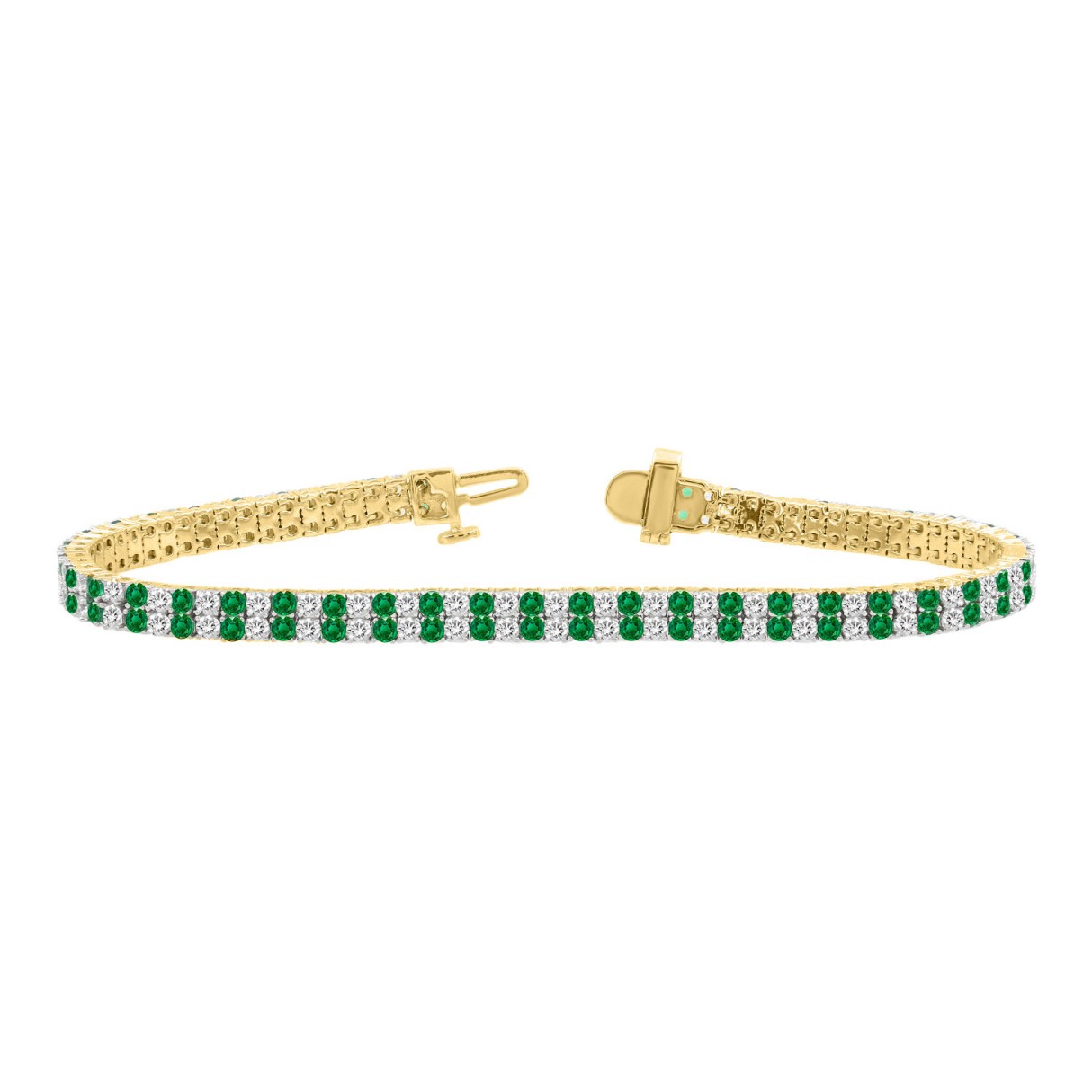 LADIES BRACELET 3CT ROUND/ROUND GREEN EMERALD DIAMOND 14K YELLOW GOLD (ROUND GREEN EMERALD DIAMOND 2 3/4CT )