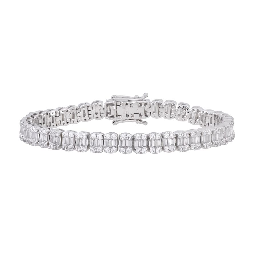 Home Bracelets/bangles LADIES BRACELET 4.85CT ROUND/BAGUETTE DIAMOND 14K WHITE GOLD