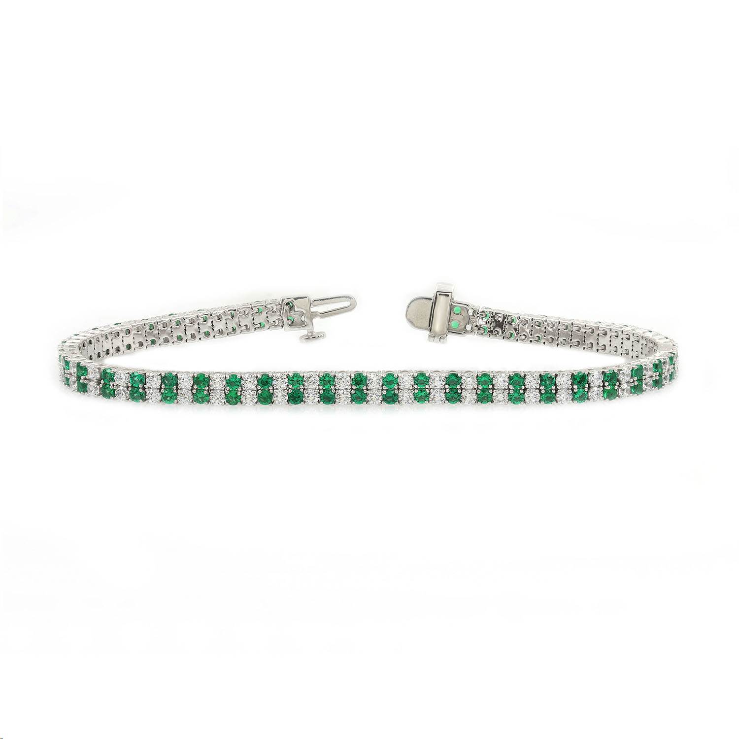 LADIES BRACELET 5.75CT EMERALD/ROUND DIAMOND 14K WHITE GOLD
