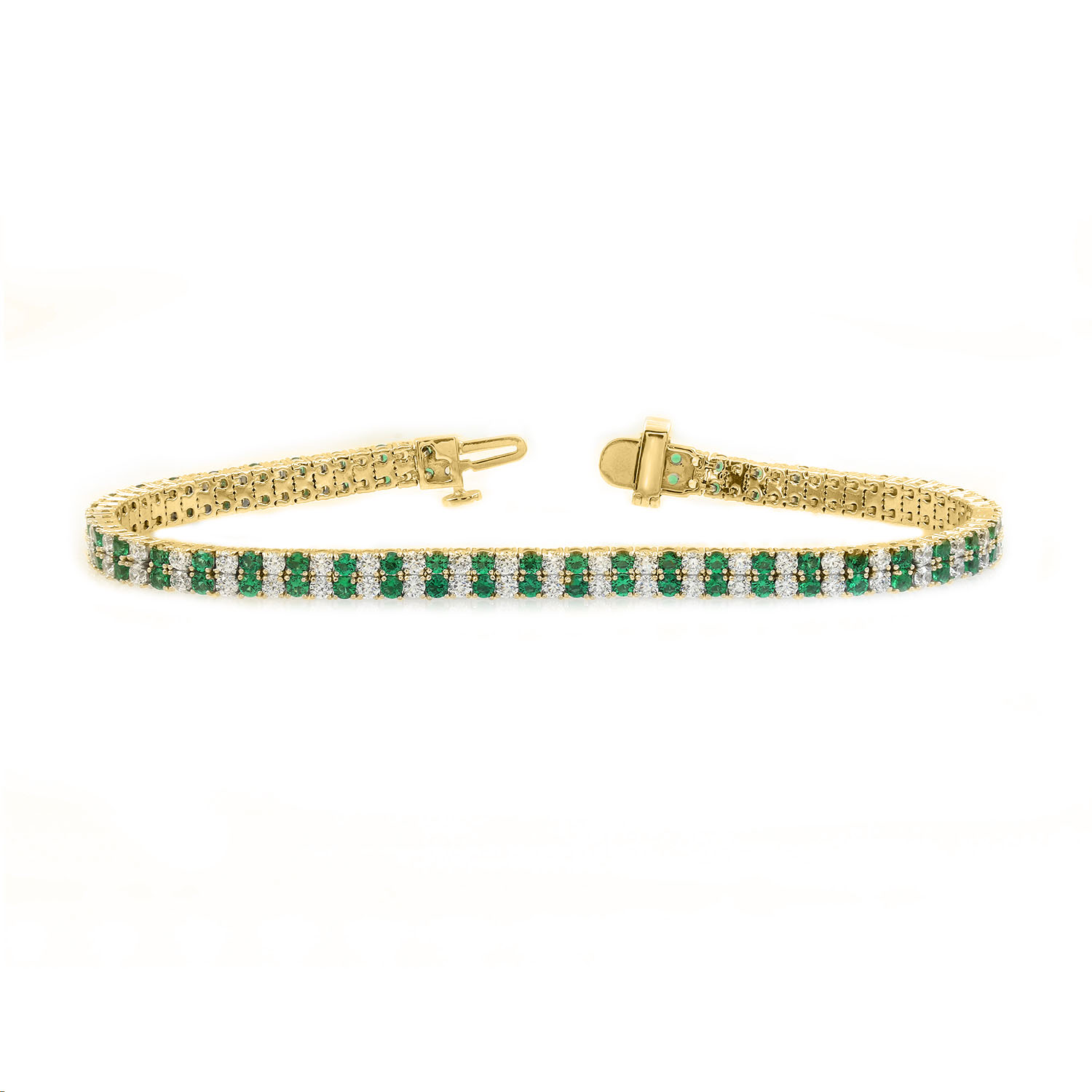 LADIES BRACELET 5.75CT EMERALD/ROUND DIAMOND 14K YELLOW GOLD