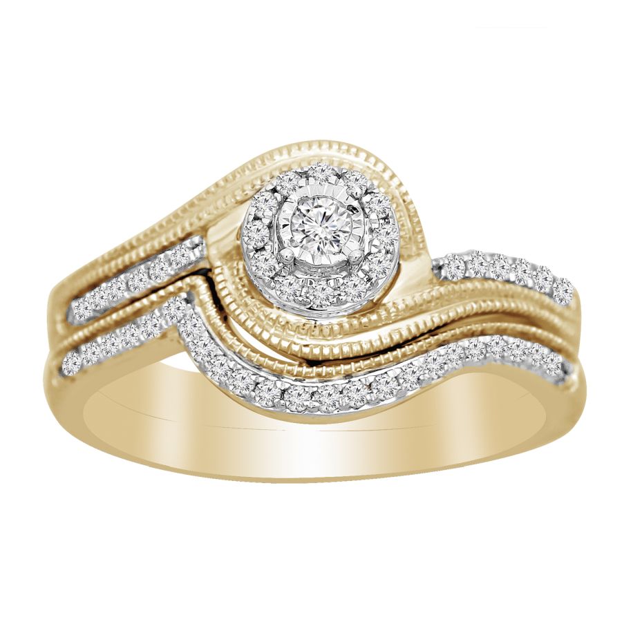 LADIES BRIDAL RING 0.25CT ROUND DIAMOND 10K YELLOW GOLD