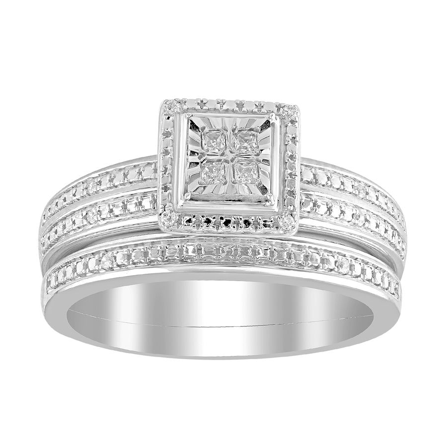 LADIES BRIDAL RING 0.25CT ROUND/PRINCESS DIAMOND 10K WHITE GOLD