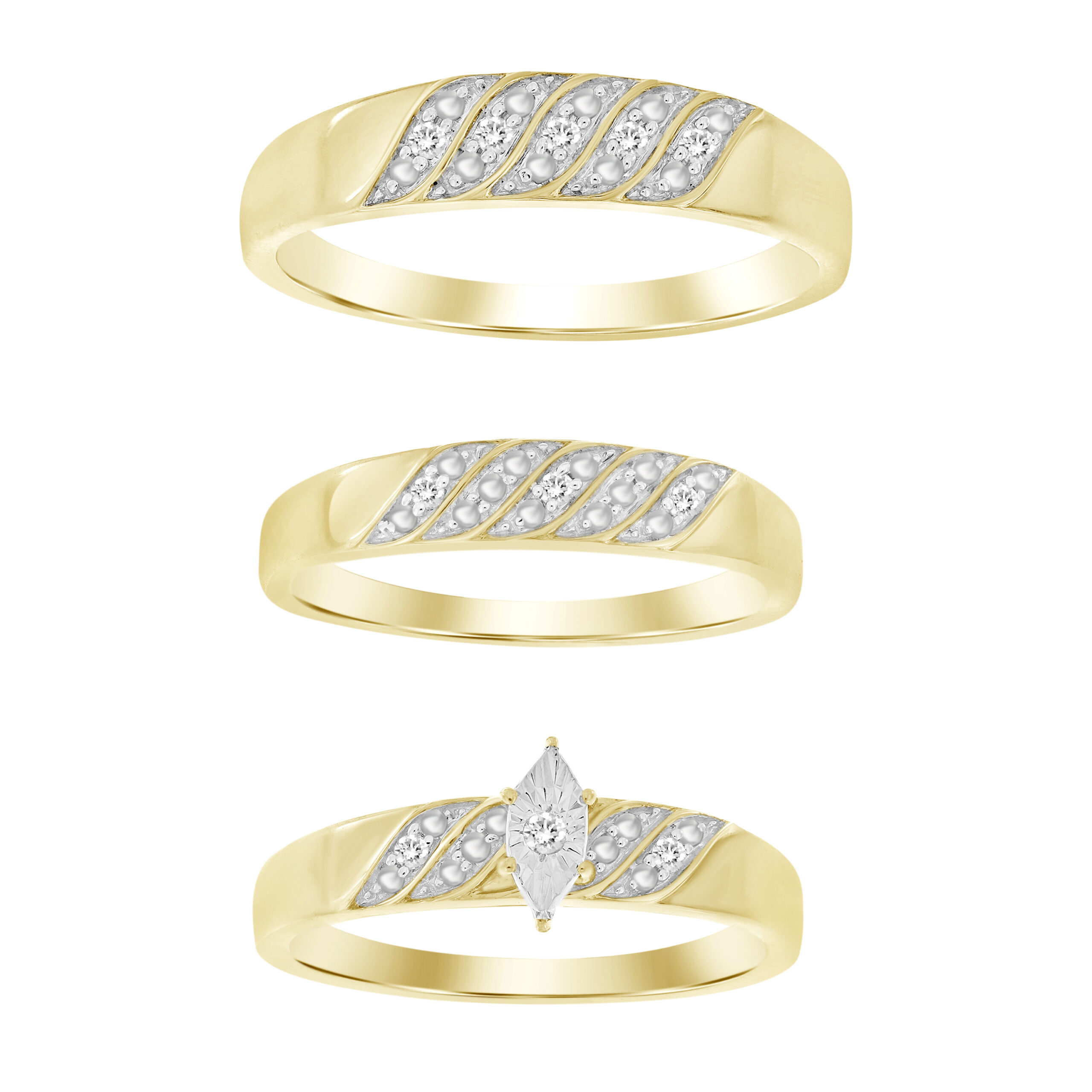 LADIES BRIDAL SET 0.05CT ROUND DIAMOND 10K YELLOW GOLD