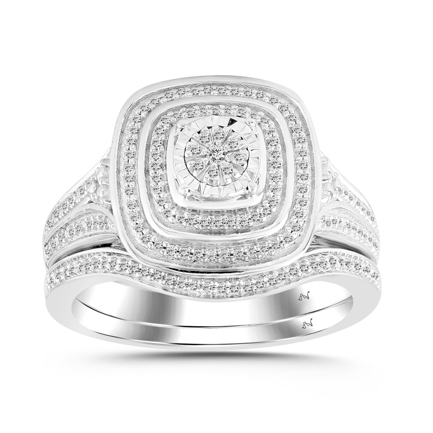 LADIES BRIDAL SET 0.10CT ROUND DIAMOND STERLING SILVER WHITE