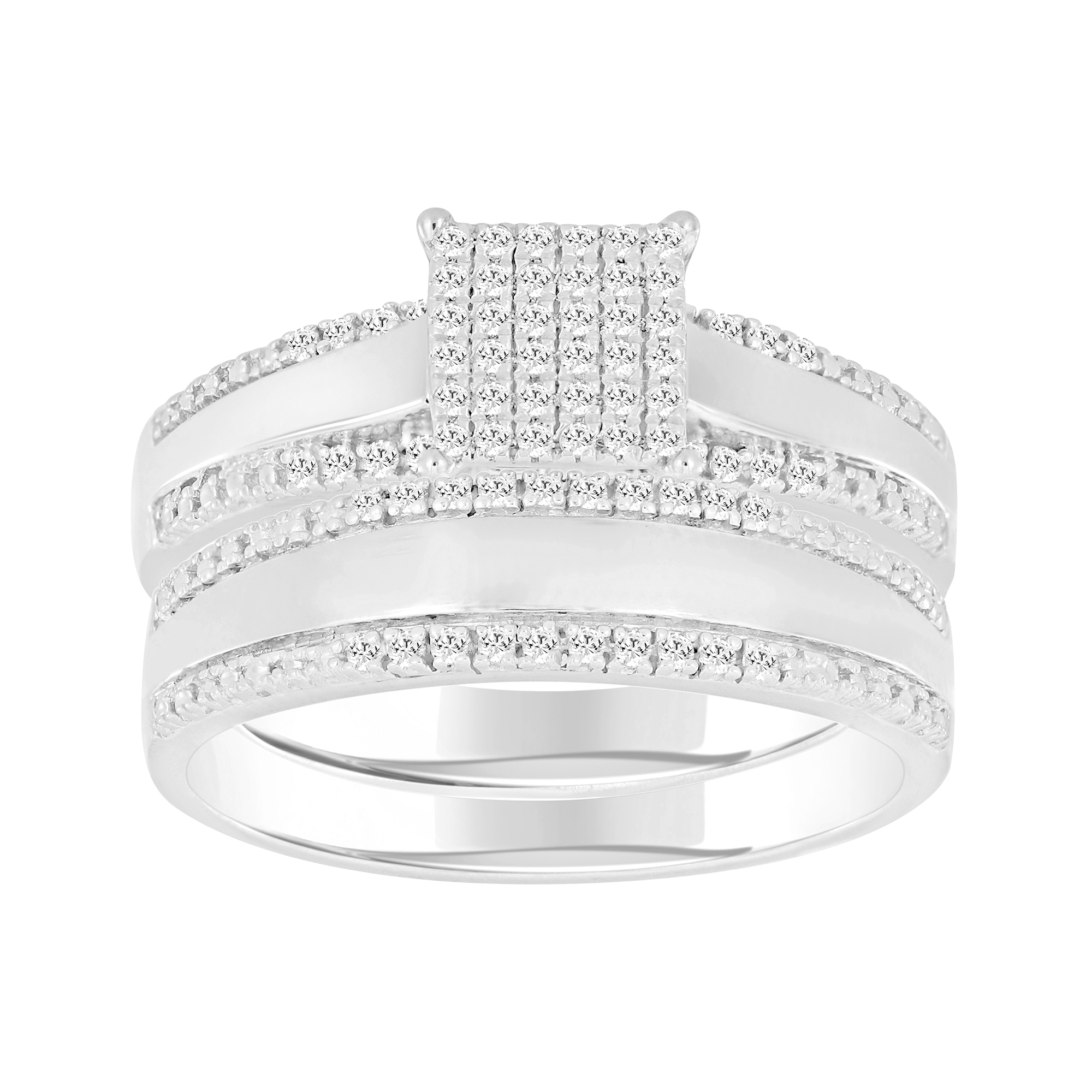 LADIES BRIDAL SET 0.15CT ROUND DIAMOND 10K WHITE GOLD