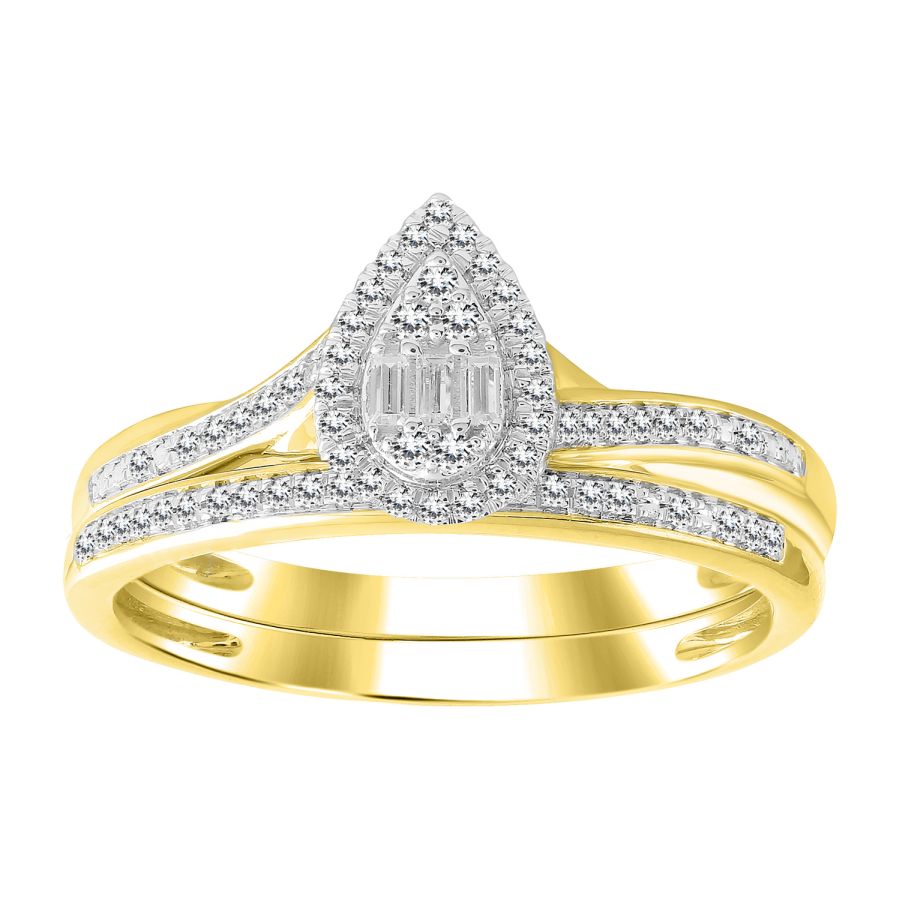 LADIES BRIDAL SET 0.15CT ROUND DIAMOND 10K YELLOW GOLD