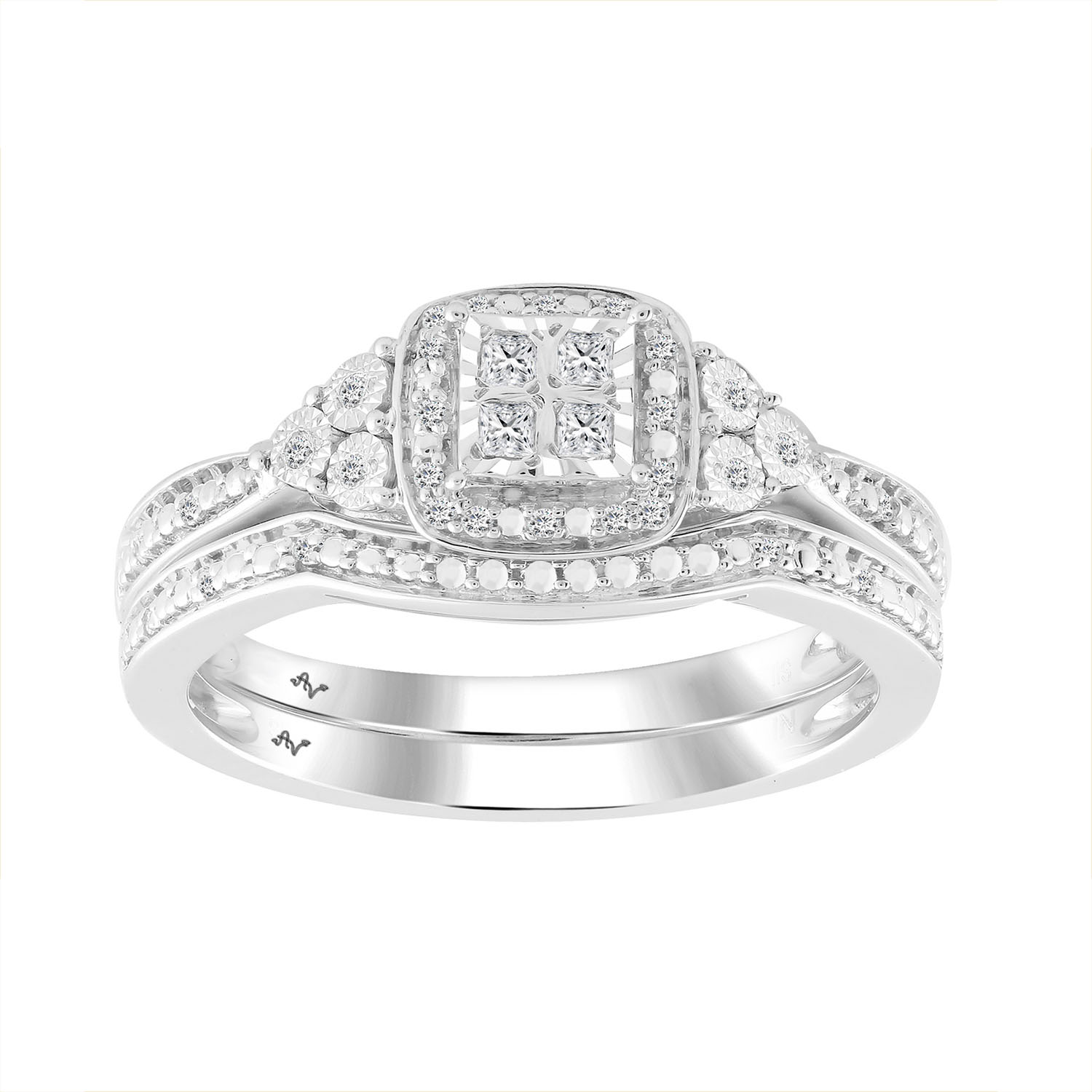 LADIES BRIDAL SET 0.15CT ROUND/PRINCESS DIAMOND 14K WHITE GOLD