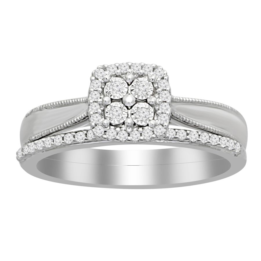LADIES BRIDAL SET 0.20CT ROUND DIAMOND 10K WHITE GOLD