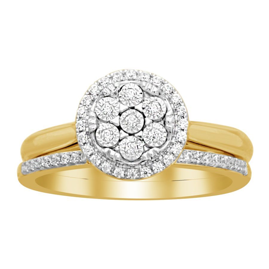 LADIES BRIDAL SET 0.20CT ROUND DIAMOND 10K YELLOW GOLD