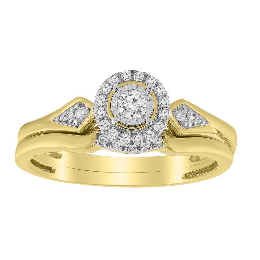 LADIES BRIDAL SET 0.20CT ROUND DIAMOND 10K YELLOW GOLD