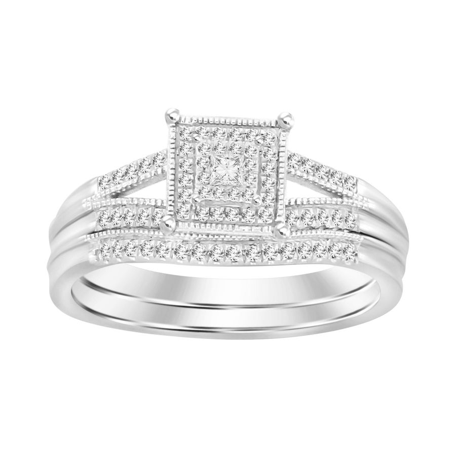 LADIES BRIDAL SET 0.20CT ROUND/PRINCESS DIAMOND 10K WHITE GOLD