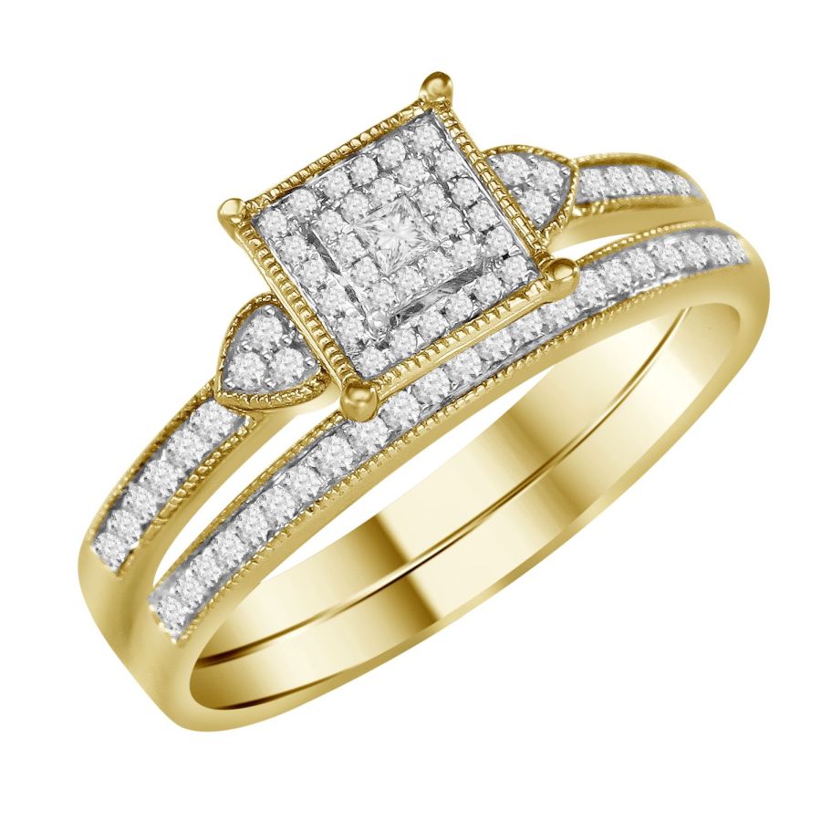 LADIES BRIDAL SET 0.20CT ROUND/PRINCESS DIAMOND 10K YELLOW GOLD