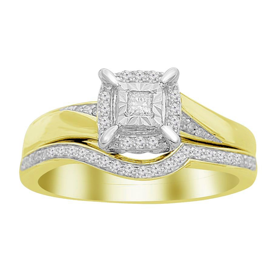 LADIES BRIDAL SET 0.20CT ROUND/PRINCESS DIAMOND 10K YELLOW GOLD