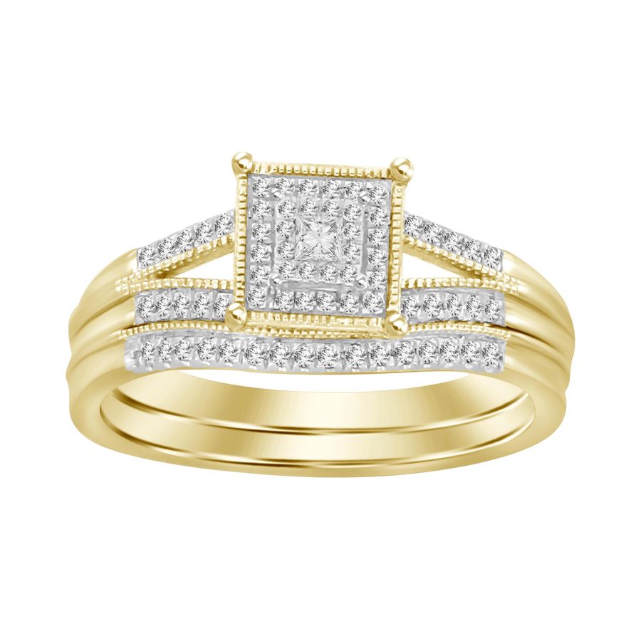 LADIES BRIDAL SET 0.20CT ROUND/PRINCESS DIAMOND 10K YELLOW GOLD