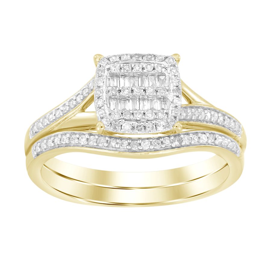 LADIES BRIDAL SET 0.25CT ROUND/BAGUETTE DIAMOND 10K YELLOW GOLD