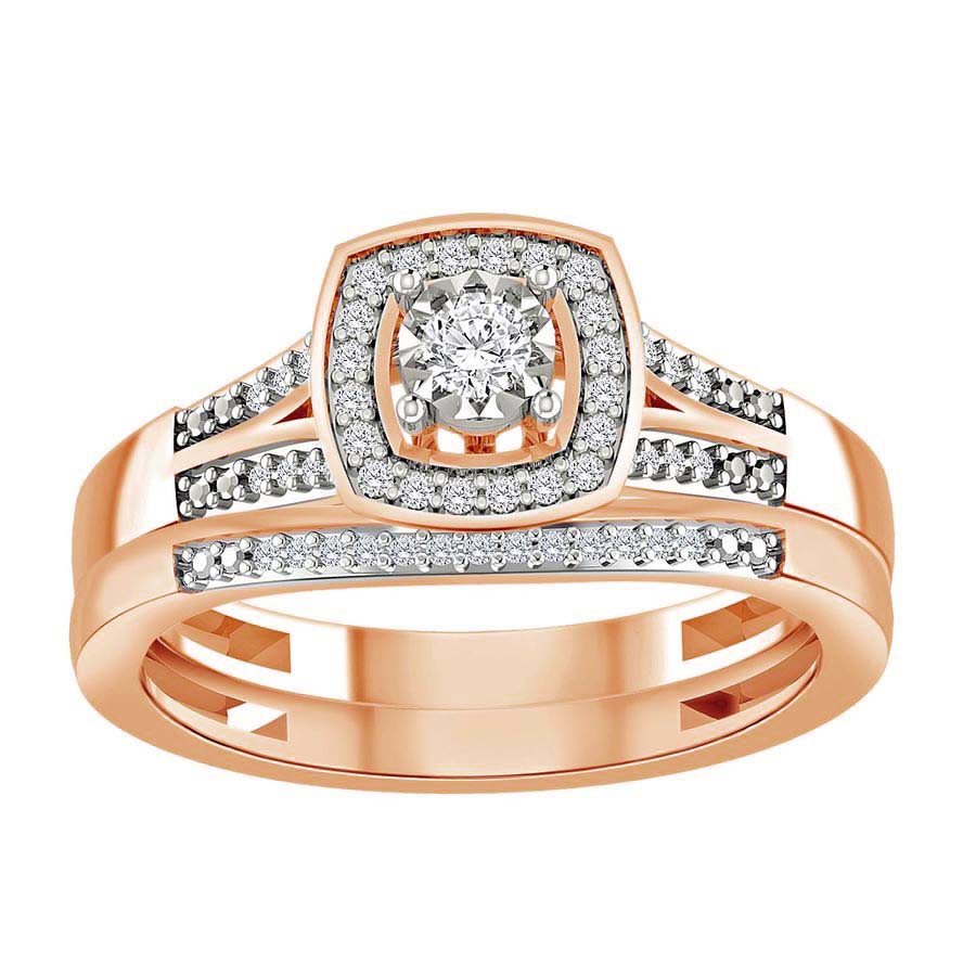 LADIES BRIDAL SET 0.25CT ROUND DIAMOND 10K ROSE GOLD