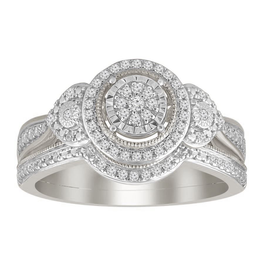 LADIES BRIDAL SET 0.25CT ROUND DIAMOND 10K WHITE GOLD