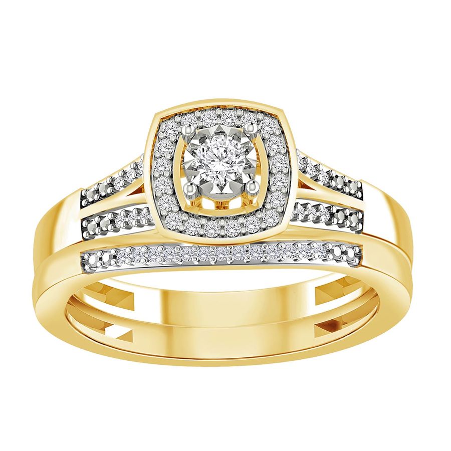 LADIES BRIDAL SET 0.25CT ROUND DIAMOND 10K YELLOW GOLD