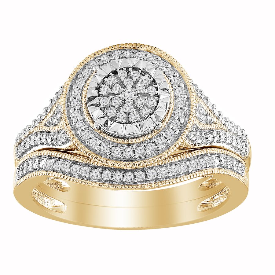 LADIES BRIDAL SET 0.25CT ROUND DIAMOND 10K YELLOW GOLD