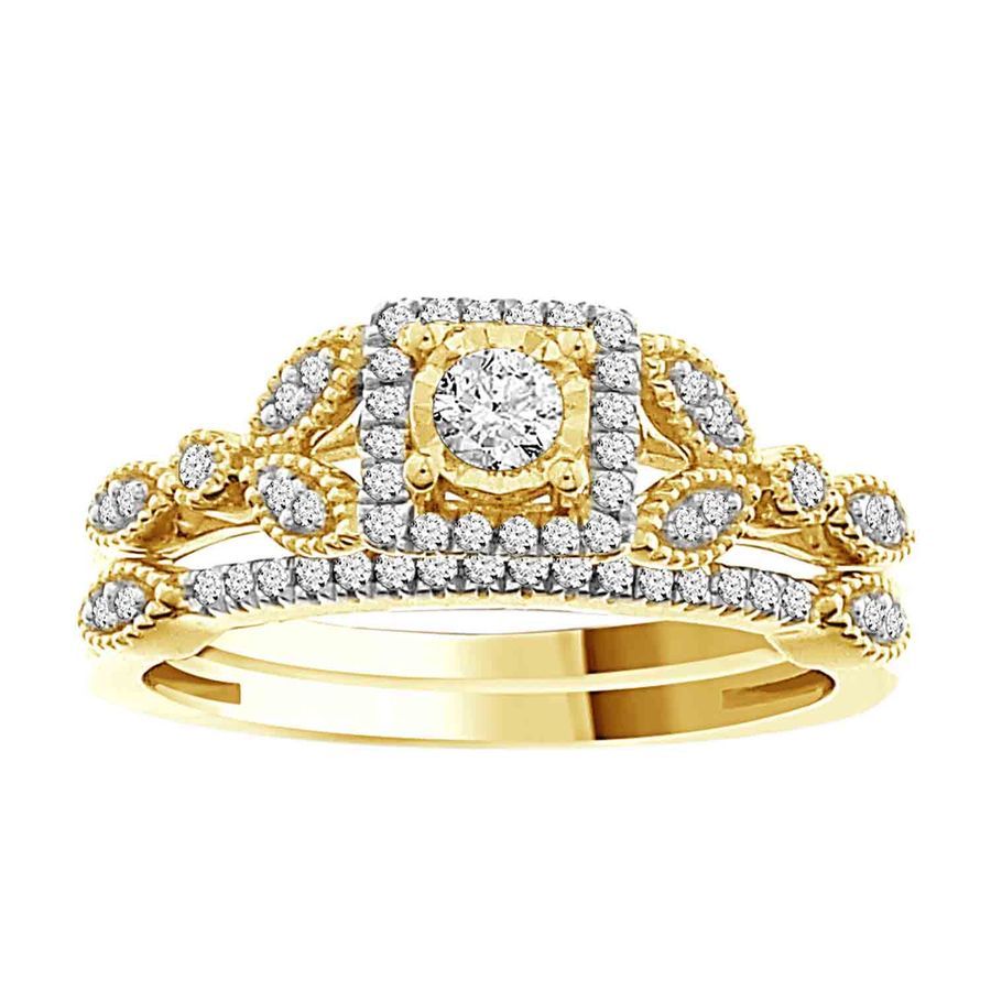 LADIES BRIDAL SET 0.25CT ROUND DIAMOND 10K YELLOW GOLD