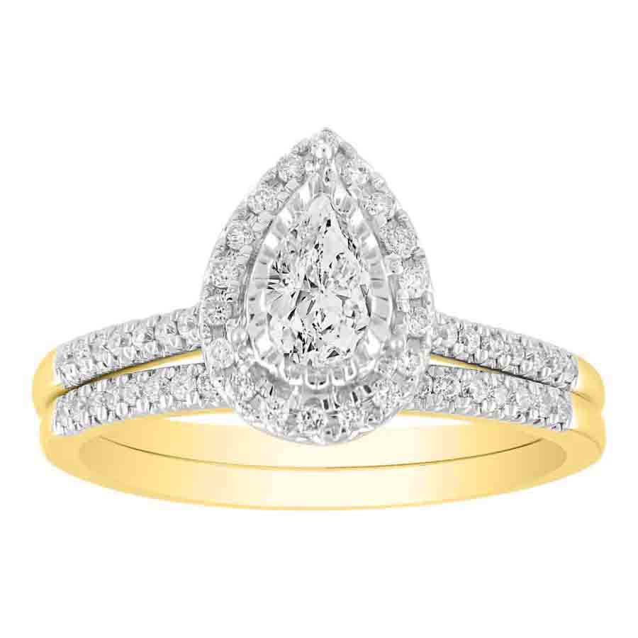 LADIES BRIDAL SET 0.60CT ROUND DIAMOND 14K YELLOW GOLD (CENTER STONE 0.33CT PEAR DIAMOND)