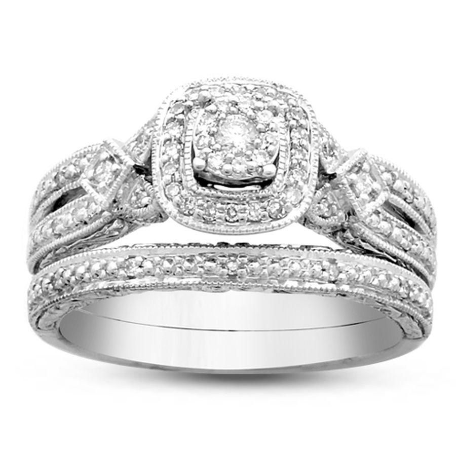 Home Rings LADIES BRIDAL SET 0.25CT ROUND DIAMOND STERLING SILVER/WHITE GOLD