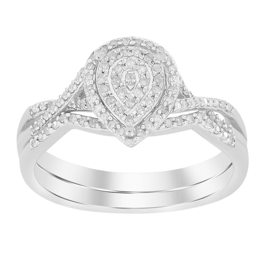 LADIES BRIDAL SET 0.25CT ROUND DIAMOND STERLING SILVER/WHITE GOLD