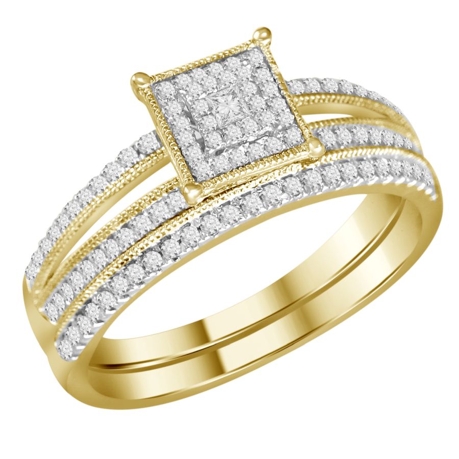LADIES BRIDAL SET 0.25CT ROUND/PRINCESS DIAMOND 10K WHITE GOLD