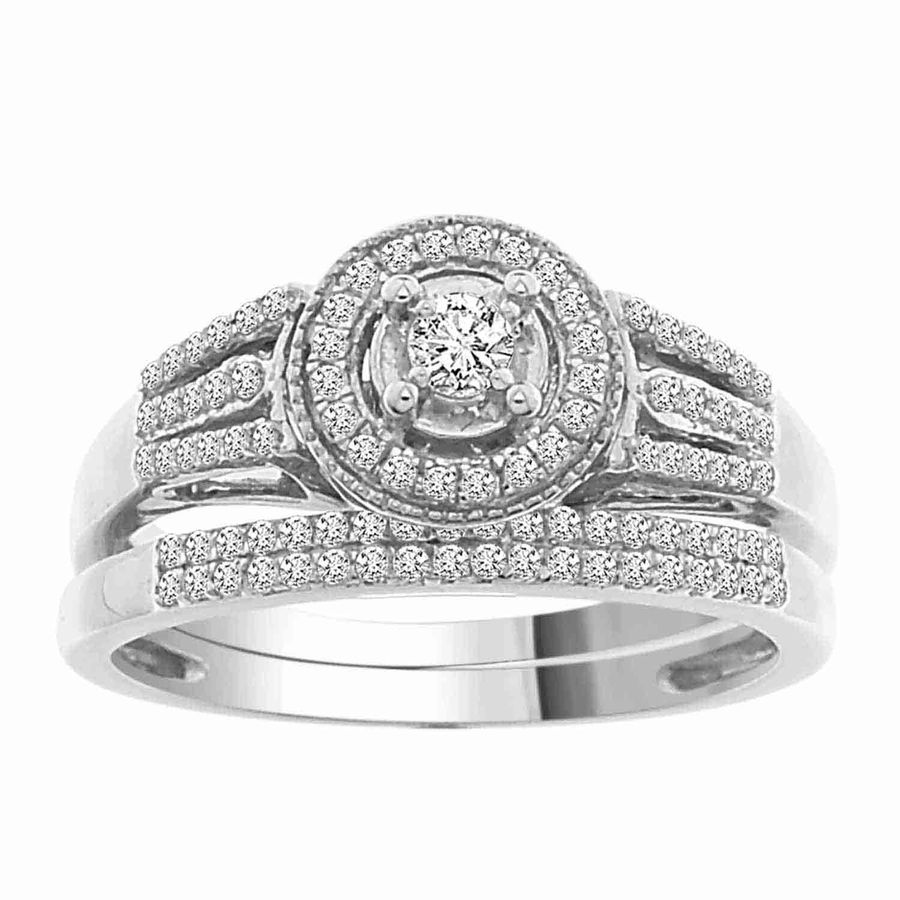 LADIES BRIDAL SET 0.30CT ROUND DIAMOND 10K WHITE GOLD
