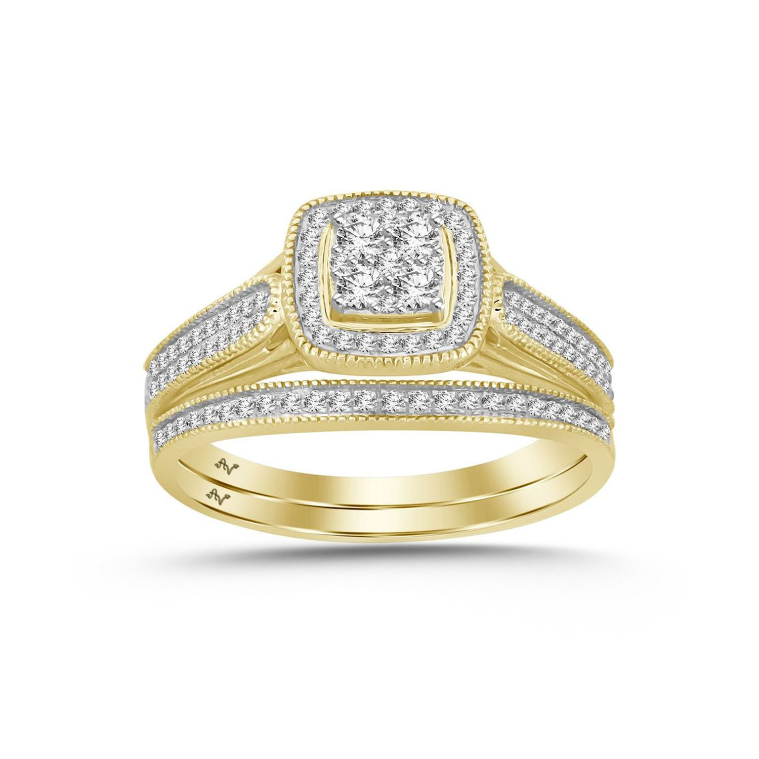 LADIES BRIDAL SET 0.80CT ROUND DIAMOND 10K YELLOW GOLD