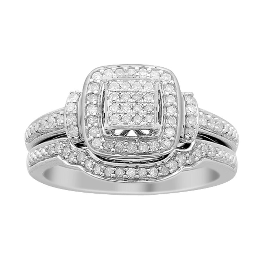 LADIES BRIDAL SET 0.30CT ROUND DIAMOND STERLING SILVER