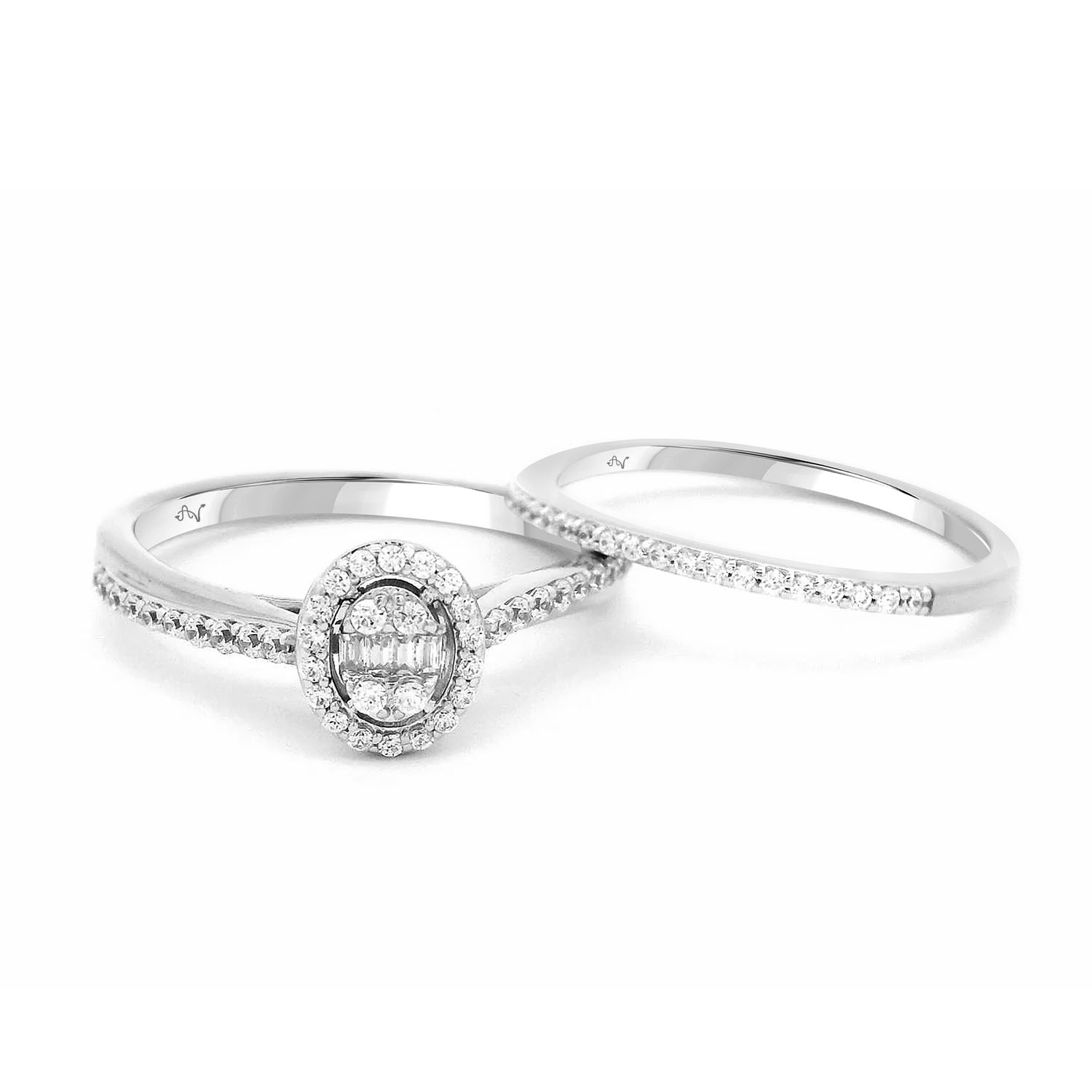 LADIES BRIDAL SET 0.32CT ROUND/BAGUETTE DIAMOND 14K WHITE GOLD