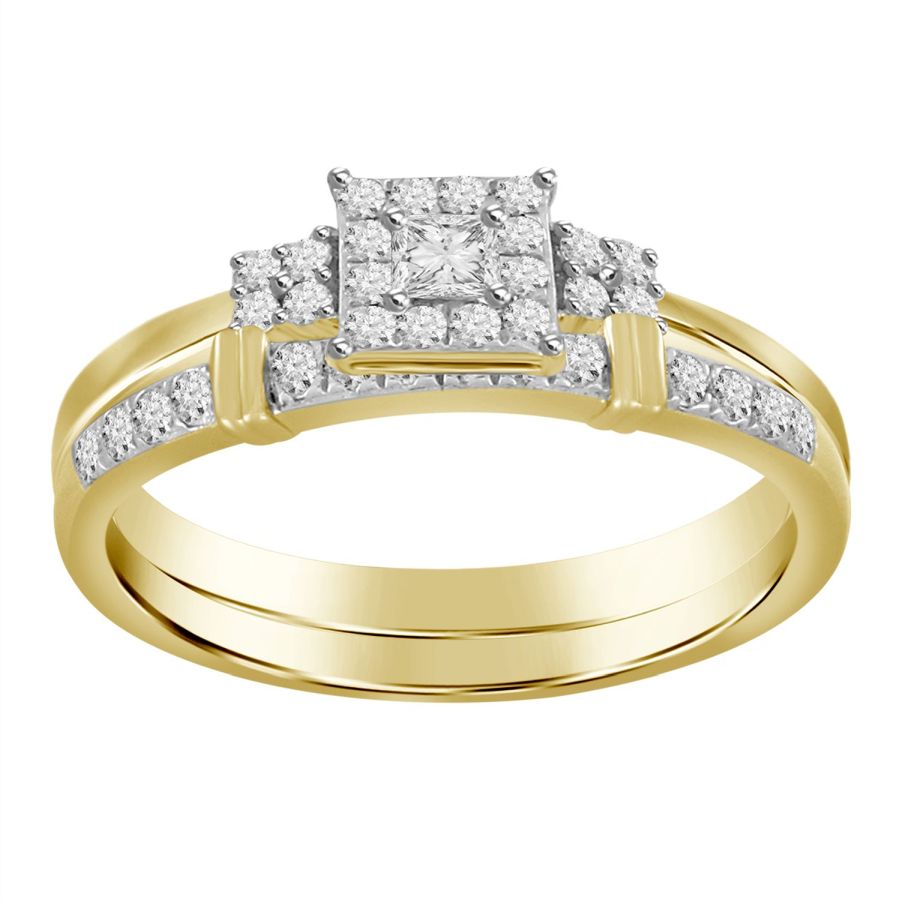 LADIES BRIDAL SET 0.33CT PRINCE /ROUND DIAMOND 10K YELLOW GOLD