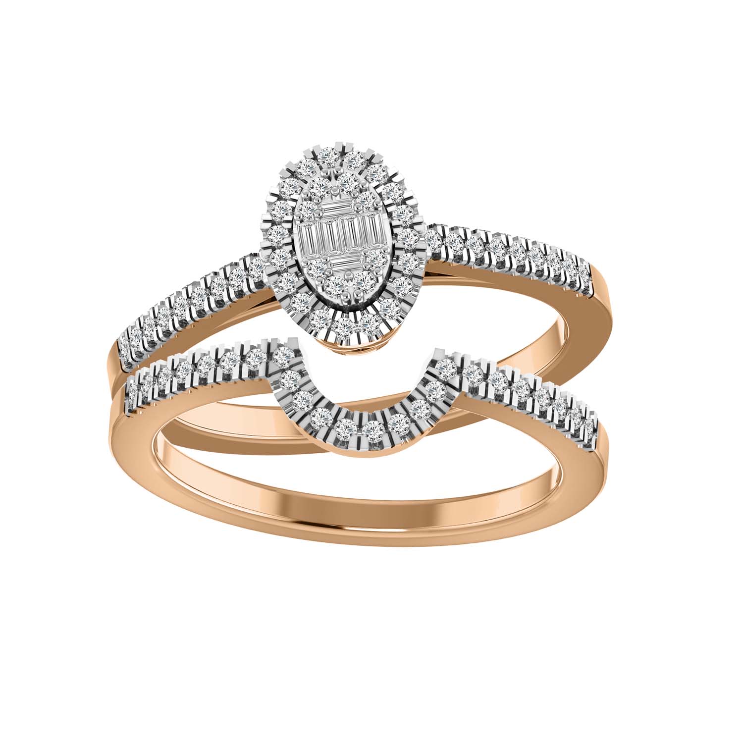 LADIES BRIDAL SET 0.33CT ROUND/BAGUETTE DIAMOND 10K ROSE GOLD